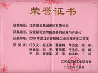 公司先后獲國家火炬計劃重點高新技術企業(yè)、江蘇省高新技術企業(yè),國家二級企業(yè), 江蘇省名牌產(chǎn)品企業(yè)、江蘇省著名商標企業(yè)、省雙文明單位,江蘇省計量保證確認單位、江蘇省AAA資信企業(yè)、江蘇省環(huán)境保護先進企業(yè)、 江蘇省重合同守信用企業(yè)等稱號?!敖鹣蟆迸茰p速機,先后獲得了省部優(yōu)產(chǎn)品,國家機械工業(yè)部科技進步二等獎,機械工業(yè)部“可靠性考核特別推薦產(chǎn)品”,SJDCY結(jié)晶機專用減速機、邊緣傳動磨機減速器 、蝸輪齒輪雙級減速器、PR模塊式減速器、立式磨機減速器和同軸式圓柱齒輪減速器等先后通過了省級鑒定,并分別獲得了 江蘇省和淮安市科技進步獎二等獎和三等獎。2002年3月通過ISO9001:2000質(zhì)量管理體系認證。有自營進出口權。
