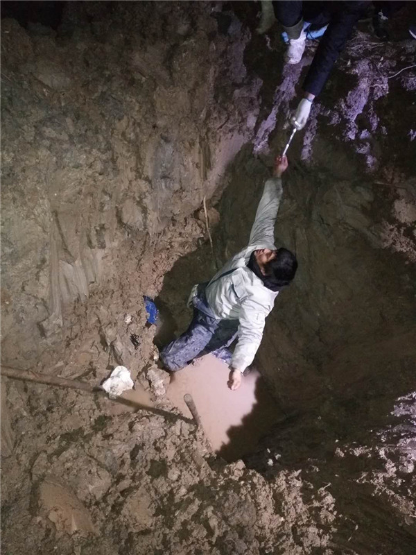 晚上6點30分,水電中心的搶修電話突然響起,位于農場的于沈居民點一條供水管道被凍裂,大面積停水。水電中心主任江堯忠第一反應,“這是一條供水主管網(wǎng),如果搶修不及時,必定會導致居民生活用水無法正常使用,必須盡快搶修好。”按照制定的應急預案,帶著搶修工人冒著嚴寒立即趕往搶修現(xiàn)場。由于地面凍層比較厚,搶修人員先使用破碎錘將地面破開,把積水排出去,然后使用專用接頭把漏水點封住,在最短時間內對漏水管道進行搶修,站在冰冷的水中凍的直打哆嗦,大家都咬牙堅持,經(jīng)過近3個小時的努力搶修,漏水管線得以修復,恢復了正常供水。