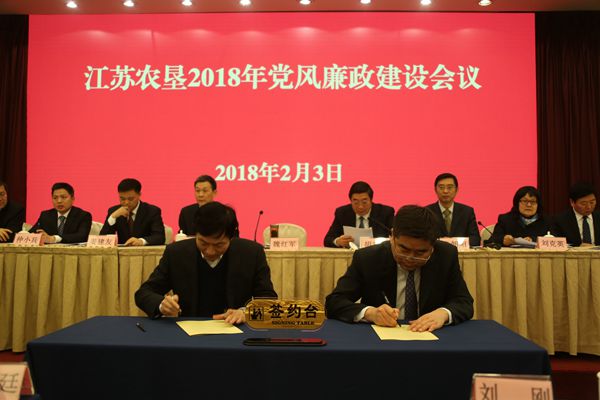 2月3日下午,集團(tuán)公司在南京召開2018年黨風(fēng)廉政建設(shè)會議,分析墾區(qū)黨風(fēng)廉政建設(shè)形勢,部署2018年黨風(fēng)廉政建設(shè)任務(wù)。集團(tuán)公司黨委書記、董事長魏紅軍作了講話,并與直屬企業(yè)黨委負(fù)責(zé)人逐一簽訂黨風(fēng)廉政建設(shè)責(zé)任狀,黨委副書記、總經(jīng)理胡兆輝主持會議,黨委委員、紀(jì)委書記章朝陽傳達(dá)中紀(jì)委二次全會和省紀(jì)委三次全會精神。集團(tuán)公司黨委班子成員姚準(zhǔn)明、姜建友、劉克英、仲小兵、蘇志富、楊義林,以及周作義、陳建軍,工會主席佟曉廷、總經(jīng)濟(jì)師劉剛,總經(jīng)理助理孫鍵、季友兵出席會議。