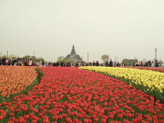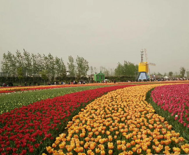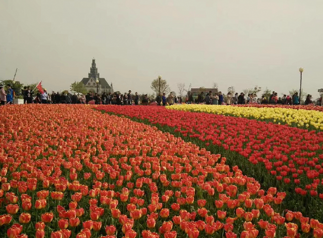域外的風(fēng)車、郁金香和來自全國(guó)各地超高的人氣,特別是那種紅、黃、白、褐、紫、橙等多種花色在春風(fēng)中搖曳,或交織而行,或獨(dú)立成簇,或在高低起伏的土丘上隨意地流淌,宛如天上瑰麗的云彩,又像仙女們織出的緞綢,令人感到流光溢彩又精彩絕倫,看了花海就使心情更加愉悅起來,花海中的荷風(fēng)半島、水岸印象、多彩秀湖、智能莊園的荷蘭風(fēng)格元素,在美侖美奐又色彩斑斕郁金香的襯托下,恍若置身在荷蘭國(guó)度的感覺。