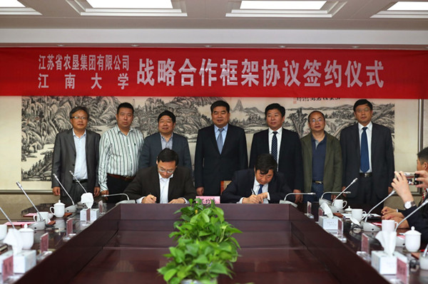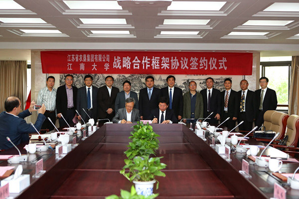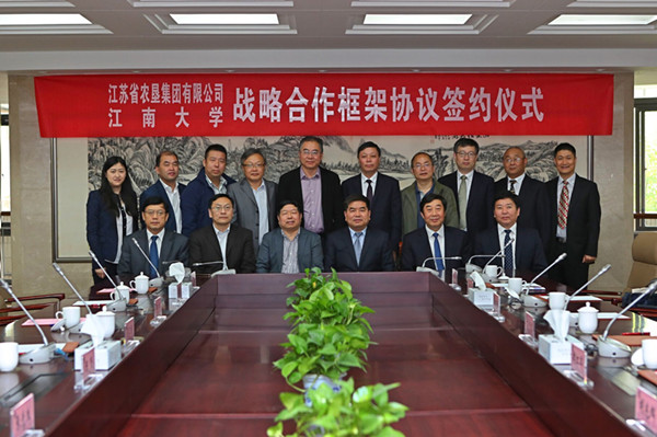 5月7日上午,江蘇省農(nóng)墾集團(tuán)有限公司與江南大學(xué)戰(zhàn)略合作簽約儀式在無錫舉行。江南大學(xué)校長陳堅、副校長吳正國,集團(tuán)公司黨委書記、董事長魏紅軍,總經(jīng)理胡兆輝,黨委委員蘇志富等出席簽約儀式。魏紅軍、陳堅分別代表雙方在簽約儀式上致辭。簽約前,江南大學(xué)黨委書記朱拓會見了魏紅軍一行。