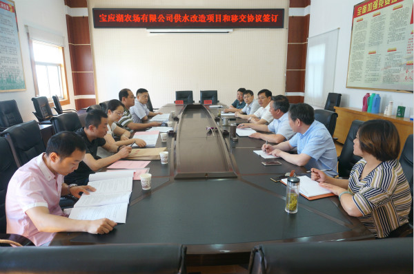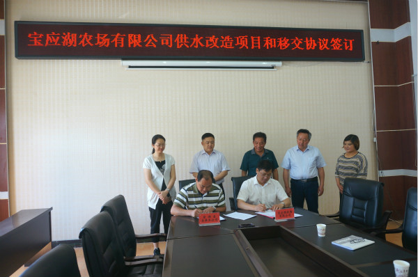 連日來,寶應湖農(nóng)場有限公司積極與金湖縣自來水公司溝通對接,推進公司內(nèi)供水質(zhì)量提升改造項目穩(wěn)步實施、移交協(xié)議的順利簽訂。6月13日,雙方在寶應湖農(nóng)場有限公司會議室舉辦供水改造項目和移交協(xié)議簽訂儀式。農(nóng)場有限公司總經(jīng)理趙建坤,縣自來水公司經(jīng)理柏春陽及雙方相關部門負責人參加簽約儀式。