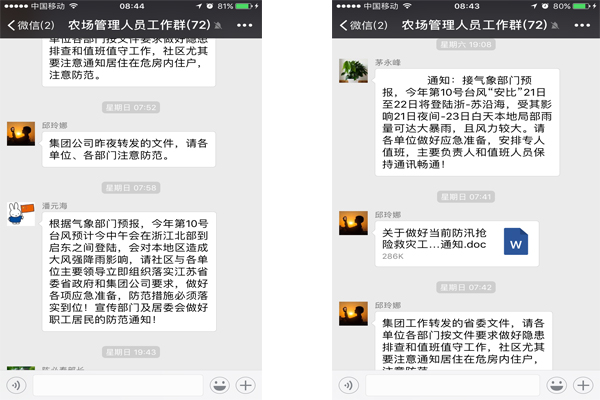 一是發(fā)布天氣預(yù)警。及時(shí)通過有線電視、微信、QQ等宣傳方式,告知職工居民臺(tái)風(fēng)“安比”來勢(shì)情況,利用手機(jī)短信介紹基本的防范知識(shí),提高應(yīng)對(duì)能力。