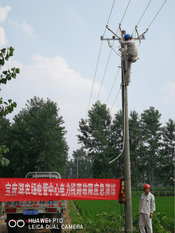 安全措施校對、工具準備、班前碰頭會、處置線路故障……7月25日,寶應湖農場有限公司電力服務中心在二分場田頭開展電力線路故障應急演練。