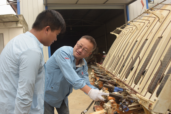 今年“三夏”農(nóng)忙一結(jié)束,江蘇省農(nóng)機(jī)維修能人、江蘇省農(nóng)墾農(nóng)發(fā)臨海分公司農(nóng)機(jī)總站站長張春林便又來到他結(jié)對的射陽縣千秋鎮(zhèn)阜豐農(nóng)機(jī)作業(yè)專業(yè)合作社,現(xiàn)場指導(dǎo)農(nóng)機(jī)手維護(hù)與保養(yǎng)農(nóng)業(yè)機(jī)械和農(nóng)機(jī)具,這讓合作社負(fù)責(zé)人范曉紅非常感動。