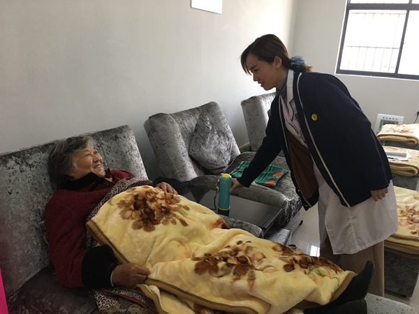居家養(yǎng)老服務站還專門配有醫(yī)療人員負責給老人提供測量血壓、血糖、保健按摩、康復訓練和健康咨詢等服務。