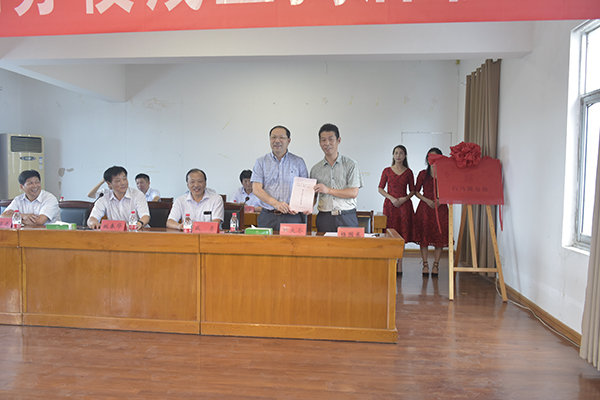 張大冬和白馬湖學(xué)??傂iL(zhǎng)工楊國(guó)東代表合作雙方簽定聯(lián)合辦學(xué)協(xié)議,姚春華、咸勇為淮安市新安小學(xué)白馬湖分校揭牌。