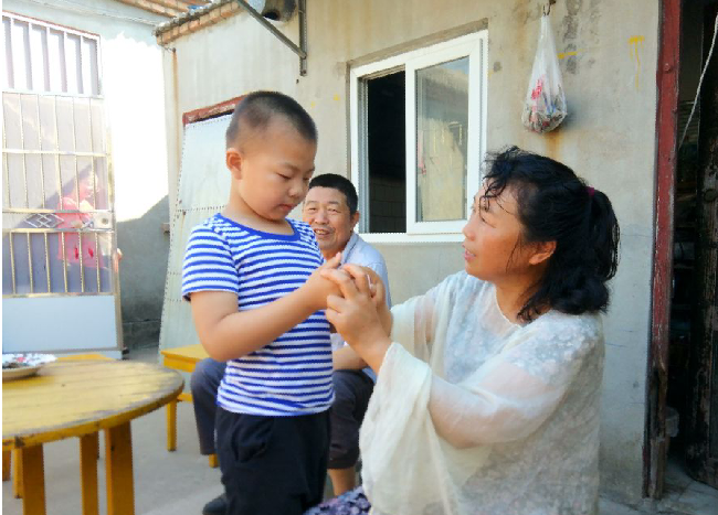 現(xiàn)在她的小孫子7歲,智力已經(jīng)達(dá)到了6歲半的水平。更讓朱鎖珍開心的是,孫子有了生活自理能力。