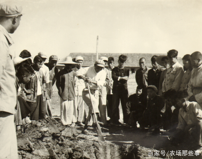 正因?yàn)榻S寻l(fā)明的“‘江大鍬’挖土法”在全農(nóng)建四師的成功推廣和在水利戰(zhàn)役中的優(yōu)良表現(xiàn),1953年3月17日,他被農(nóng)建四師表彰為"特等功臣"。并成為淮海農(nóng)場建場60周年的10大知名人物。圖一是江希友在水利工地作挖溝示范。