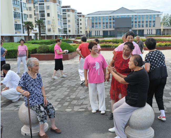 大家用真誠、直率的語言拉近了和老人的距離。張瑞瑞老人看著大家早晨鍛煉的節(jié)目,又看了看大家笑瞇瞇的表情,動情地說:“好啊、好啊,現(xiàn)在的你們真幸福。”