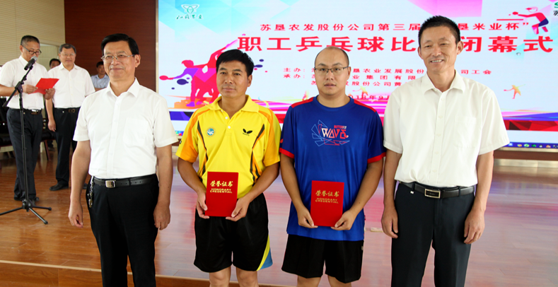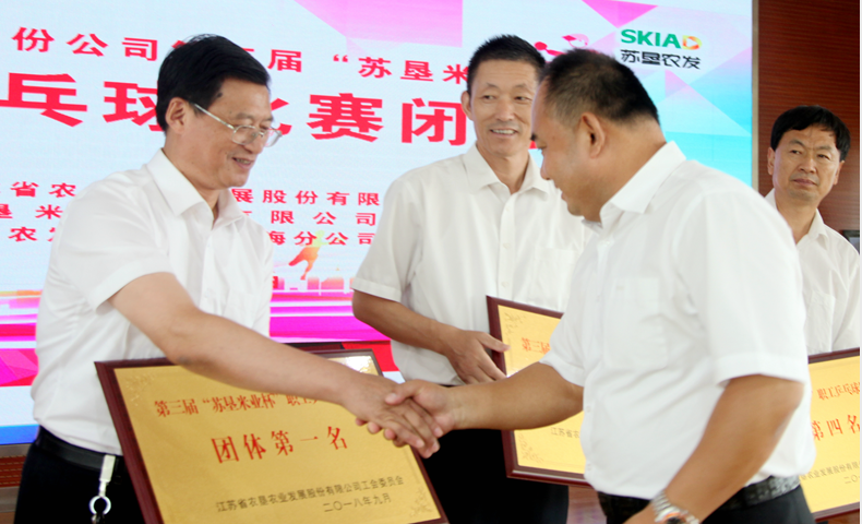此次比賽共決出團(tuán)體和男單兩個(gè)項(xiàng)目的前六名和十二強(qiáng)。經(jīng)過(guò)兩天緊張激烈的比賽, 新洋分公司代表隊(duì)脫穎而出,榮獲團(tuán)體第一名,第二至第六名的代表隊(duì)分別為:黃海分公司、蘇墾米業(yè)、東辛分公司、三河分公司、白馬湖分公司。新洋分公司的王光軼榮獲男子單打第一名,三河分公司項(xiàng)永寶、新曹分公司顧文才分獲二、三名。新洋分公司、黃海分公司、蘇墾米業(yè)、東辛分公司獲得賽會(huì)組織獎(jiǎng);南通分公司榮獲精神文明獎(jiǎng)。