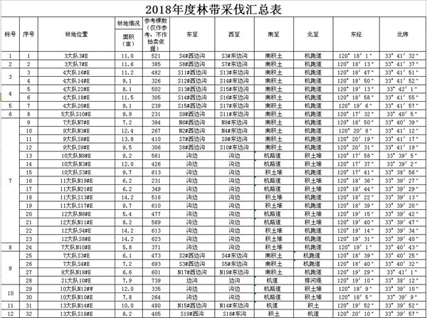 1.2018年擬采伐林帶96條,占地面積1150余畝,都是楊樹,采伐樹木55000余株。