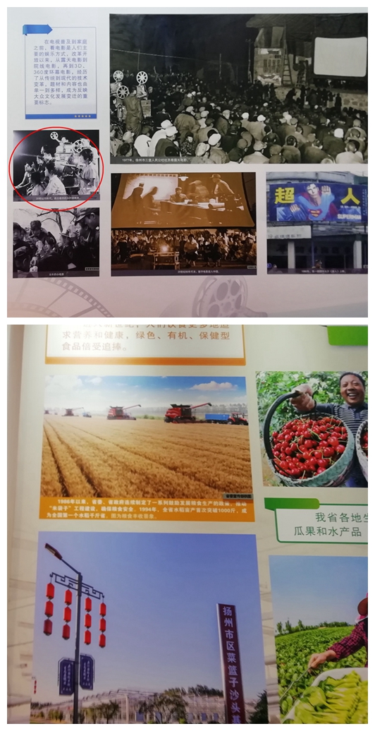 這兩張照片分別入選在“歷史跨越”和“美好生活”兩個部分中,照片沒有標(biāo)明是新洋農(nóng)場場景,而是從江蘇省宏觀上來配寫文字說明的,說明新洋農(nóng)場在某些方面帶有普遍的意義,這是新洋人感到自豪的。