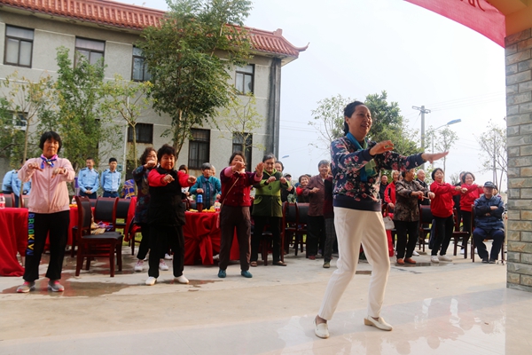 活動(dòng)現(xiàn)場(chǎng),老年文藝骨干們給我們準(zhǔn)備了精彩的表演,太極拳、柔力球充分展現(xiàn)了老年人飽滿(mǎn)的精氣神,民間傳統(tǒng)文化《送夫》、《鵝毛大雪》等淮劇表演,贏得掌聲不斷,服務(wù)站工作人員的詩(shī)詞朗誦《歲歲重陽(yáng) 今又重陽(yáng)》飽含了尊老愛(ài)老之情,駐場(chǎng)部隊(duì)的“三句半”表演更是將活動(dòng)推向了高潮,最后,活動(dòng)在歡快的五行健身操中落下帷幕。