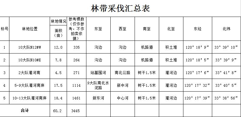 1.擬采伐林帶5條,占地面積60余畝,都是楊樹(shù),采伐樹(shù)木3400余株。