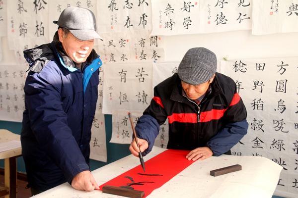 眼前這幾位正圍在案臺(tái)前揮潑墨、熱情創(chuàng)作的人,都是新洋資深的書法愛好者們。他們或堅(jiān)持書法,或堅(jiān)持繪畫技藝練習(xí)了幾十年,每年都有眾多優(yōu)秀作品獲得省市縣書畫比賽的表彰。每年臨近春節(jié),他們還為新洋的職工居民“義寫春聯(lián)”,營(yíng)造濃濃的書香節(jié)日氛圍。