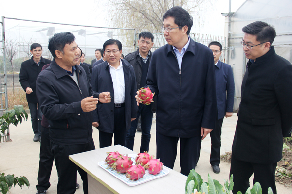 王旭東一行深入連棟大棚內,詳細了解紅心火龍果、新品種蔬菜—佛發(fā)菜的種植、市場銷售行情以及經濟收益情況,對有機農莊在現(xiàn)代農業(yè)上的的示范引領作用表示充分肯定。在該場容器扦插中山杉育苗基地,王旭東認為,利用空閑大棚扦插苗木生產是發(fā)展高效農業(yè)的新途徑,值得本市各鄉(xiāng)鎮(zhèn)學習和借鑒。