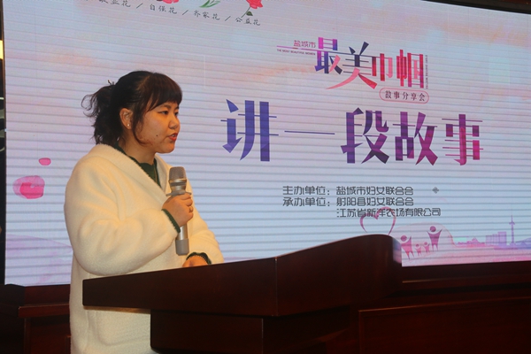 分享會圍繞鹽城市“最美巾幗•自強(qiáng)花”榮譽稱號獲得者——農(nóng)場職工祁兆花展開,分為分享一首歌、分享一本書、分享一個故事、分享一個承諾、分享一個傳遞五個環(huán)節(jié)。