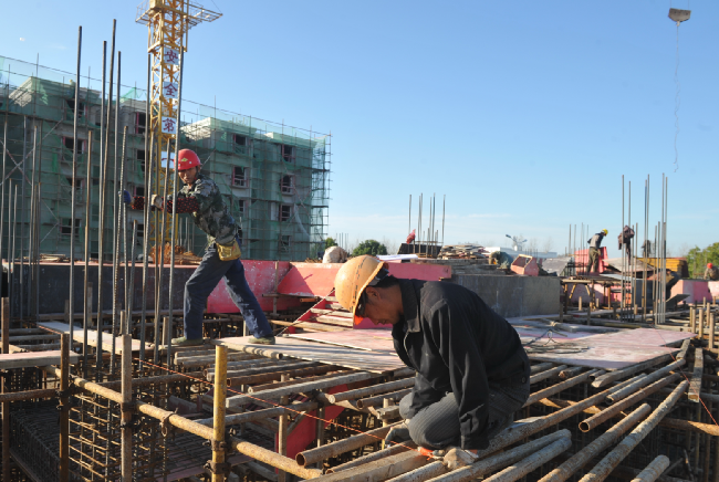 沾滿灰塵的粗布衣服是他們的裝配,黝黑的笑臉是他們的標(biāo)志,健壯魁梧的身體又構(gòu)成了建筑工人的形象。由于我經(jīng)常采訪他們的緣故,更是感受著他們工作的與眾不同。你看,有時(shí)他們?yōu)榱粟s進(jìn)度,每天在曙光微露時(shí),工地上就傳來(lái)叮叮當(dāng)當(dāng)?shù)穆曇簦麄兊纳碛霸谙脊獾匿摷苌吓试?,與陽(yáng)光倒映在地面上,書(shū)寫(xiě)著的是一個(gè)充滿活力的勞動(dòng)者的形象;有時(shí)他們?yōu)榱伺c時(shí)間賽跑,烈日下汗水浸透了他們的衣襟,甚至流淌進(jìn)眼睛的汗水也無(wú)暇擦拭;暮色中就是忍受著蚊叮蟲(chóng)咬,也要把當(dāng)天規(guī)定的任務(wù)完成,而不能影響第二天的工程的正常開(kāi)展。