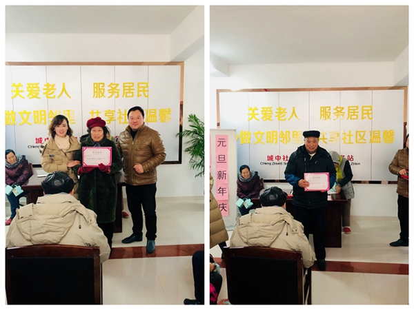 老人夏正才說:“你們把服務(wù)站打扮的很隆重,這是對老年人的重視嘛,參加活動不但有獎品,還有跨年蛋糕和我們老人分享,真的是很開心啊!”