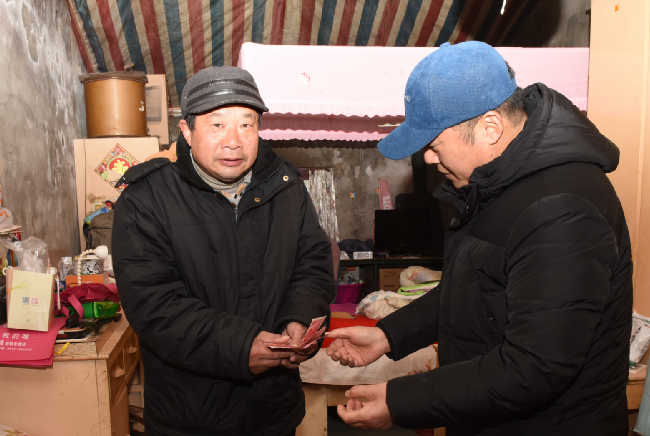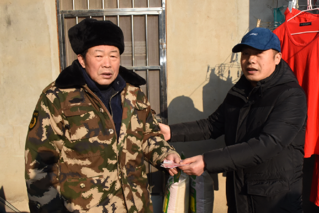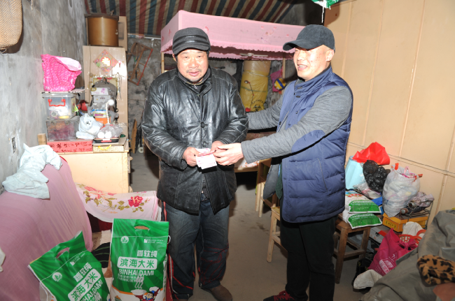 此前,為較好地掌握本居委會職工居民的生活狀況,常年在外奔波的城西居委會居民陸同聯(lián)經(jīng)常與本轄區(qū)居委會主任臧成龍保持聯(lián)系,陸同聯(lián)在去年2月12日隱姓埋名為農(nóng)場社區(qū)精準(zhǔn)幫扶建檔立卡貧困戶嚴(yán)建明送上1000元現(xiàn)金和2袋大米;去年12月3日為身患重病致貧的朱懷兵送上1000元現(xiàn)金的基礎(chǔ)上,今年在新春來臨之際,又一次伸出援手,為這兩個特殊家庭再次奉獻(xiàn)愛心,各送去2袋大米和500元現(xiàn)金,并帶信要求他們好好保養(yǎng)身體,享受現(xiàn)今生活的美好。