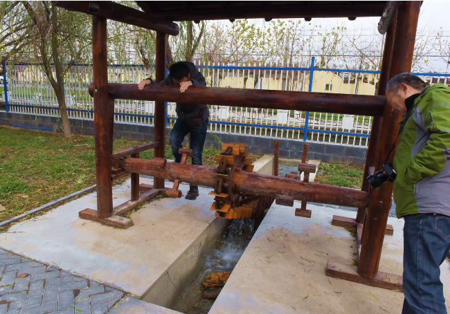 他們干著干著,不覺東方發(fā)白了,天亮了,太陽出來了??纯刺镩g積水,已減低二寸多,綠綠的棉苗露出頭來,大家高高興興的收兵回家,一路上說的笑的都是一句話:我們有把握戰(zhàn)勝自然,使棉苗脫險,并生長旺盛!圖為當(dāng)年農(nóng)建四師戰(zhàn)士在踏水車排水和在農(nóng)建四師暨淮海農(nóng)場歷史陳列館互動區(qū)展示出來的水車原型。