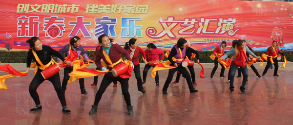 (圖為東辛職工群眾在新春大家樂活動中表演腰鼓)