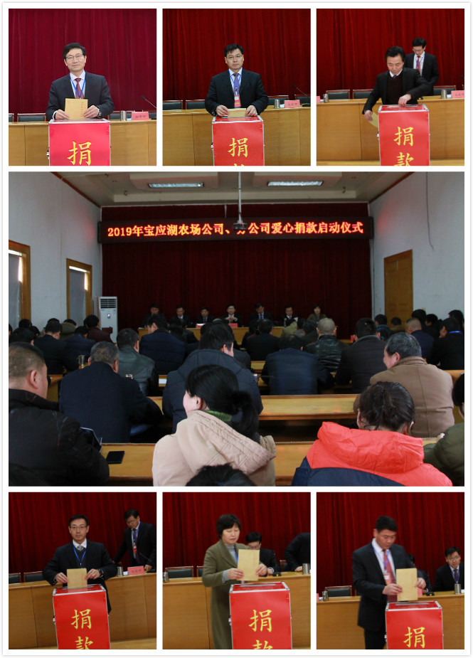 “這是心的呼喚,這是愛的奉獻……”2月28日,伴隨著愛的旋律,寶應湖農場有限公司、分公司啟動2018年愛心捐款儀式,以涓滴善款匯聚人間大愛。