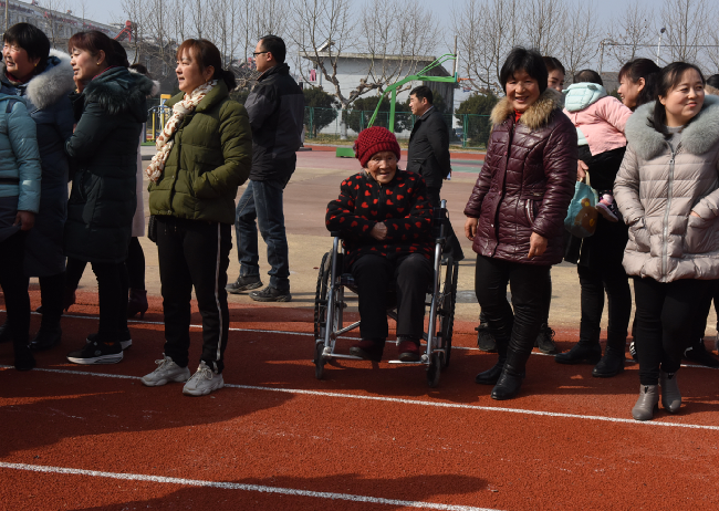 張瑞瑞老人在現(xiàn)場端坐在輪椅上,饒有興趣地觀看職工居民們熱衷地參加表演,遇到開心處,還拉拉女兒的手,說著話。從老人目前的狀態(tài)中,我們發(fā)現(xiàn)老人的視力很好,精神也不錯,看得出老人在現(xiàn)場笑著也很是開心。