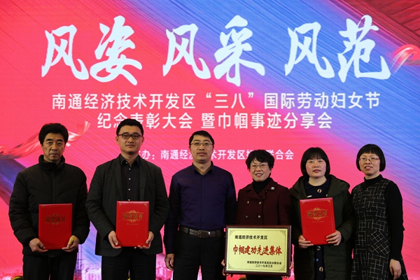 3月6日下午,為表彰先進(jìn),激勵(lì)全區(qū)廣大婦女釋放創(chuàng)造活力,南通市經(jīng)濟(jì)技術(shù)開發(fā)區(qū)婦女聯(lián)合會(huì)在開發(fā)區(qū)管委會(huì)隆重召開表彰大會(huì),對(duì)在全區(qū)婦女事業(yè)中做出突出貢獻(xiàn)的先進(jìn)集體和個(gè)人進(jìn)行表彰。蘇墾南通公司黨委委員、紀(jì)委書記、工會(huì)主席孫健應(yīng)邀出席表彰大會(huì)。