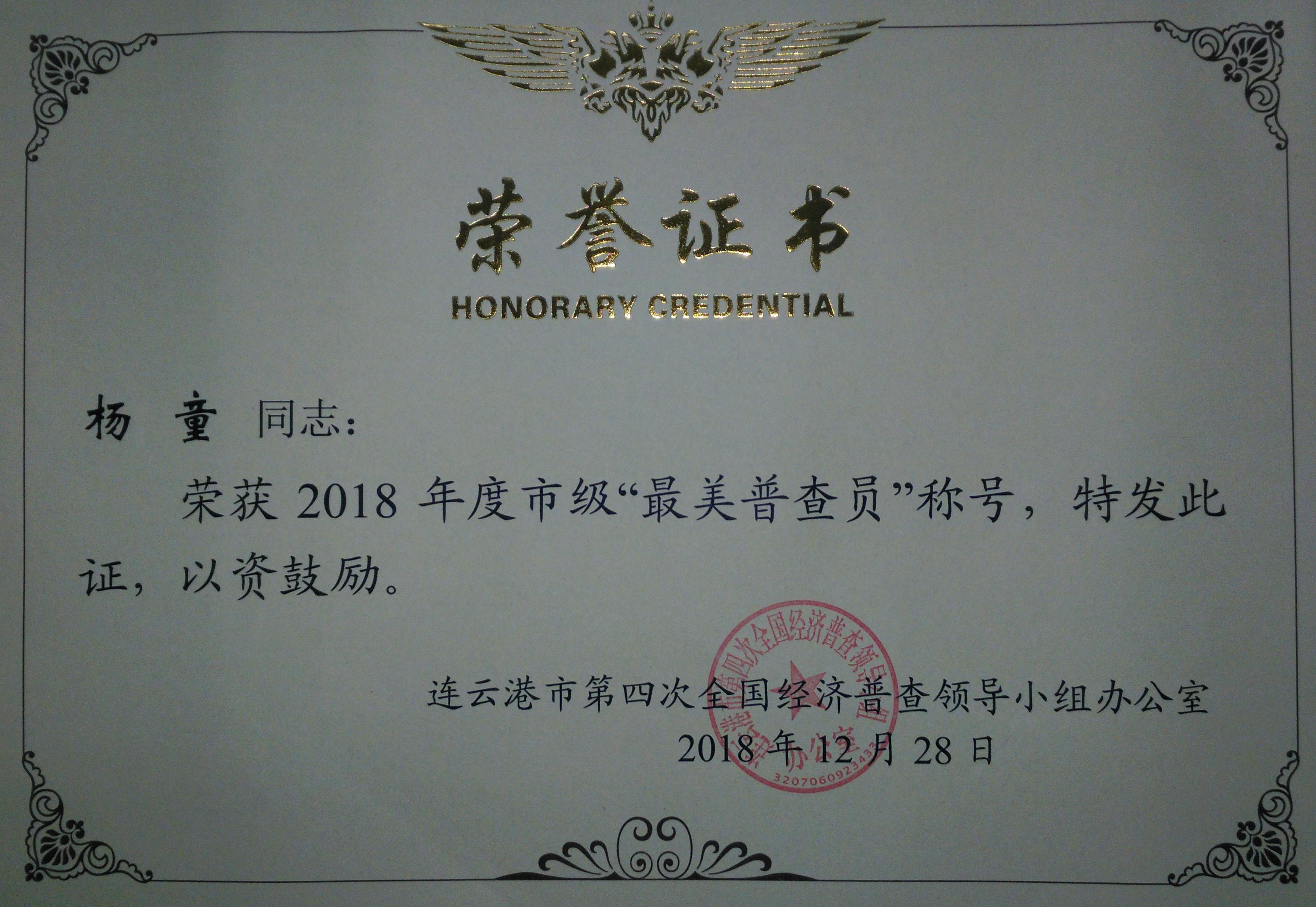 (圖為東辛楊童獲得“最美普查員”榮譽(yù)證書)