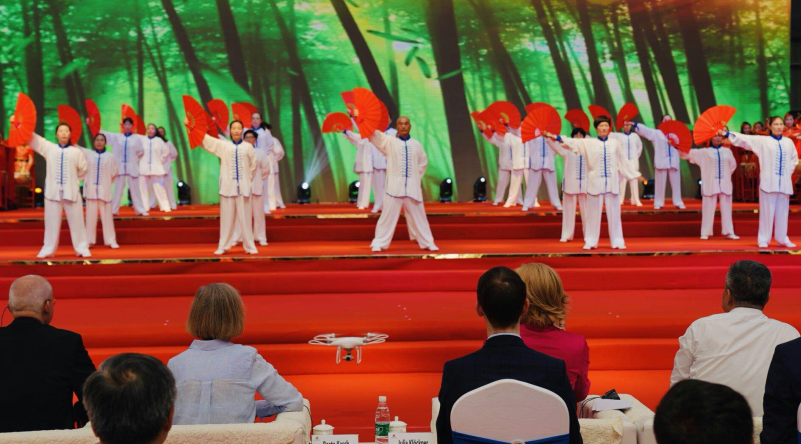 開幕式過后,與會領導和嘉賓共同觀看了“蘇北明珠·美麗黃海”文化活動展演。龍鼓、太極、功夫扇、旗袍秀組合表演《激情6月》、少兒足球操表演《我健康 我快樂》、古箏、古琴、茶藝、古典舞蹈表演《盛世琴韻》,示范園內歡歌笑語、載歌載舞,見證了第五屆田間日的成功舉辦,用文化盛宴精彩展現(xiàn)了“蘇北明珠·美麗黃海”。