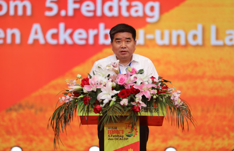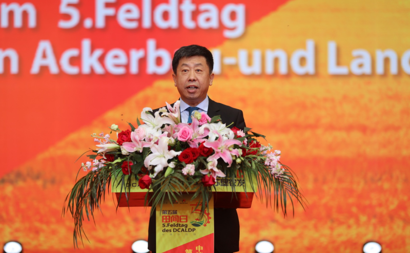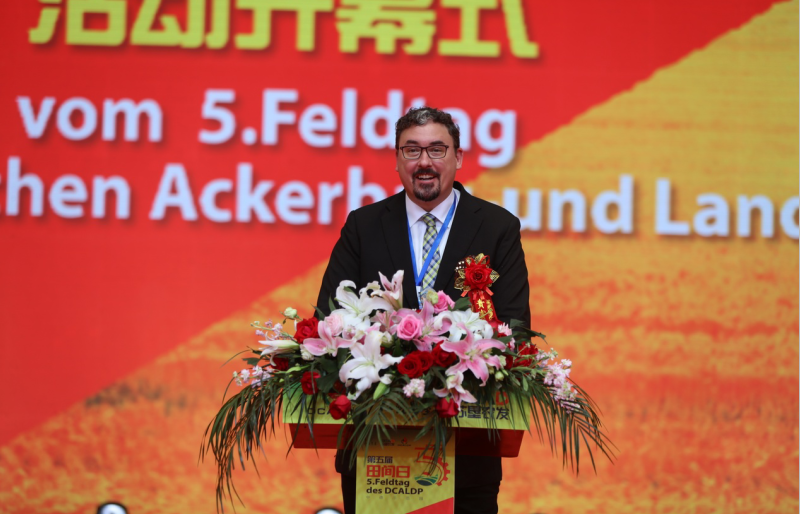 王宏前代表農業(yè)農村部對中德示范園第五屆“田間日”活動的成功舉辦表示熱烈祝賀!他說,中德農業(yè)合作是中德雙邊合作的重要領域,在兩國領導人的共識引導下,2015年3月,作為中德農業(yè)雙邊合作核心平臺的中德農業(yè)中心啟動運行,中德農業(yè)示范園是中德農業(yè)中心框架下,兩國深化農業(yè)領域合作的重要項目。4年以來,在雙方的共同努力下,示范園區(qū)在創(chuàng)新耕作模式、改善土壤活力、提高種植效益、強化科技培訓等方面積累了寶貴的合作經驗,取得了豐碩的合作成果,示范園對實踐與推廣環(huán)境友好、健康土壤的生態(tài)環(huán)境和管理技術,推動農業(yè)綠色發(fā)展方面作出了良好示范,可圈可點、可喜可賀。