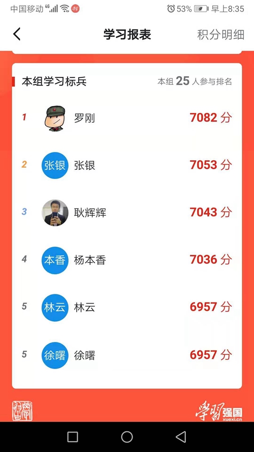 強化領(lǐng)導(dǎo),提高政治站位。成立推進“學(xué)習(xí)強國”工作領(lǐng)導(dǎo)小組,由公司黨委書記任組長,各單位、部門以及黨總支部負(fù)責(zé)人任成員,強化措施,明確責(zé)任,統(tǒng)籌推進學(xué)習(xí)強國注冊工作。迅速建立組織架構(gòu),成立了公司25個黨組織在內(nèi)的學(xué)習(xí)管理組,形成了縱向到底、橫向到邊的學(xué)習(xí)組織網(wǎng)格。截止2019年7月5日,已有10多名黨員學(xué)習(xí)強國分?jǐn)?shù)達(dá)到了7000分以上。