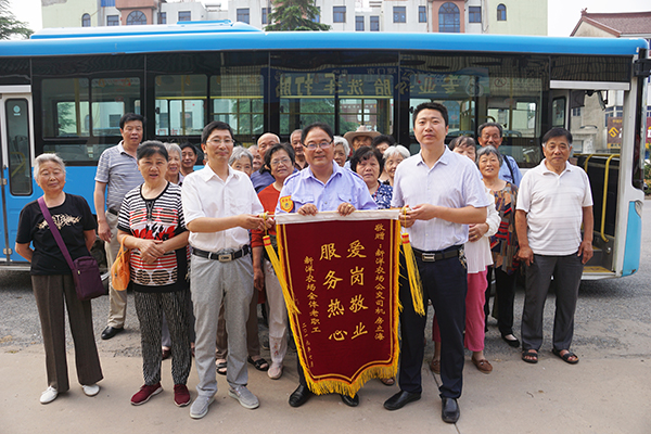 “我們今天是來(lái)向房師傅表示感謝的,謝謝他一直以來(lái)對(duì)我們的熱情服務(wù)和照顧。”7月5日上午7時(shí)30分,江蘇農(nóng)墾新洋農(nóng)場(chǎng)部分老年乘客代表們將一面寫(xiě)有“愛(ài)崗敬業(yè) 服務(wù)熱心”的紅色錦旗送到射陽(yáng)公交駕駛員房立海身邊表示感謝。
