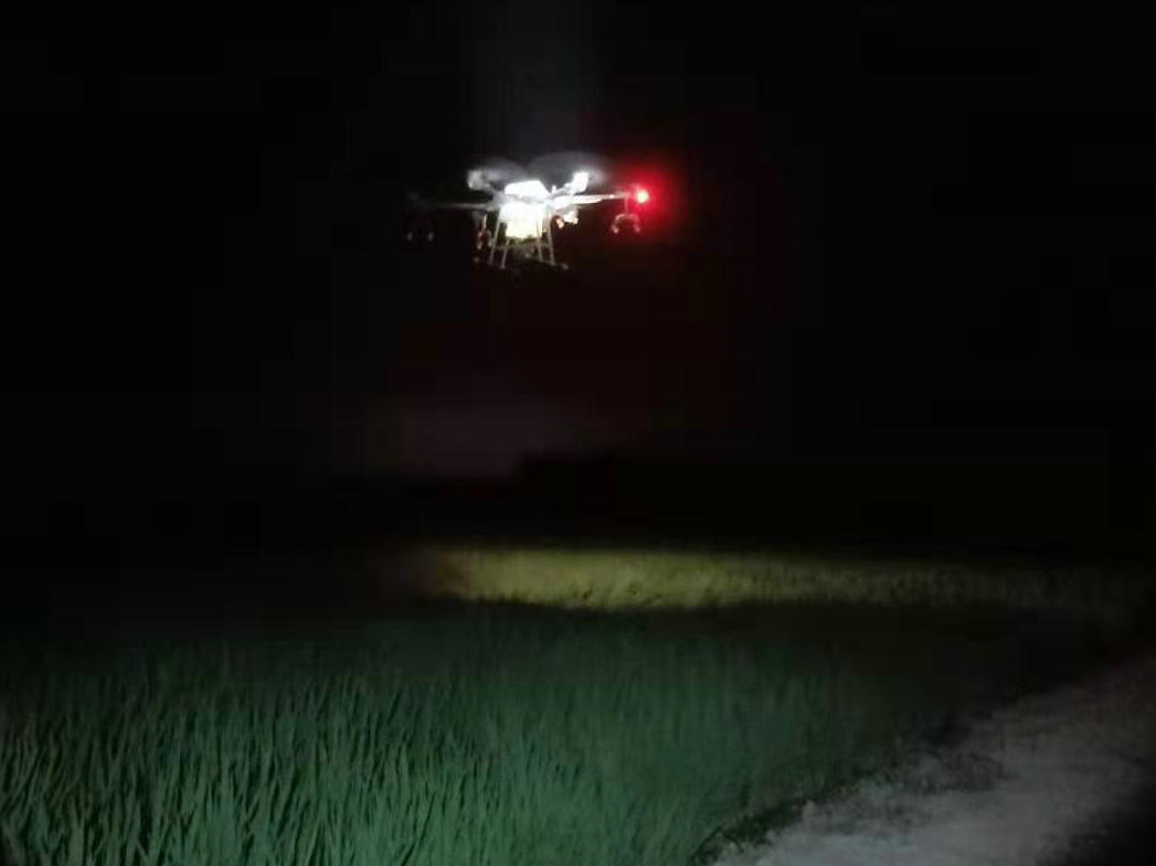 當前,寶應湖分公司共和生產(chǎn)水稻進行拔節(jié)期,針對近期連續(xù)高溫、干旱等不利因素,該生產(chǎn)區(qū)為避開高溫影響,組織植保飛機在夜晚進行水稻防病治蟲。一是規(guī)避白天強光光解藥劑,高溫蒸發(fā)藥液水份;二是利用夜間溫度低、風小優(yōu)勢,達到藥液蒸發(fā)少、霧化好的效果。連日來,該生產(chǎn)區(qū)管理員、協(xié)管員從晚上18:00開始防治,一直持續(xù)到凌晨1、2點。截止到發(fā)稿,該生產(chǎn)區(qū)種植的水稻已經(jīng)全部在夜間完成了一遍病蟲防治。