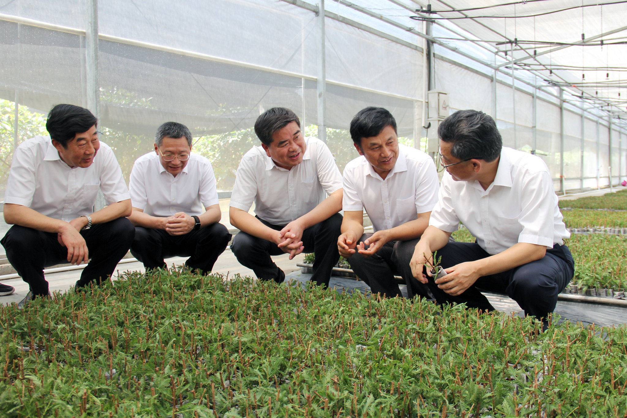 任振鶴一行首先察看了?港農(nóng)場的展板介紹。當(dāng)了解到農(nóng)場實現(xiàn)糧食高產(chǎn)穩(wěn)產(chǎn),水稻畝產(chǎn)達1300斤、小麥達1000斤后,任振鶴表示肯定。隨后,任振鶴走進?港農(nóng)場有機農(nóng)莊連棟大棚,詳細察看中山杉容器育苗和紅心火龍果種植??吹酱笈锢镏猩缴家?guī)格齊全,所育品種耐漬耐鹽、扦插成活率穩(wěn)定在70%以上,應(yīng)時水果火龍果長勢喜人、豐收在望,市場前景比較好,任振鶴表示贊賞,并勉勵農(nóng)場公司更加重視研發(fā),加快成果轉(zhuǎn)化,推動農(nóng)業(yè)產(chǎn)業(yè)化。在聽取了?港農(nóng)場黨委書記王世伯介紹的“常規(guī)農(nóng)業(yè)高效化、高效農(nóng)業(yè)規(guī)模化、有機農(nóng)業(yè)特色化、林苗產(chǎn)業(yè)精品化”發(fā)展思路后,任振鶴頻頻點頭,對?港農(nóng)場堅持有機農(nóng)業(yè)20年,大力發(fā)展“三西”產(chǎn)業(yè)(西瓜、西蘭花、西紅花)的做法表示肯定。