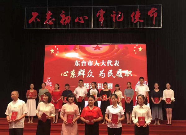 為紀(jì)念人民代表大會制度建立65周年,結(jié)合開展“不忘初心、牢記使命”主題教育活動,充分挖掘人大代表依法履職的典型事跡和感人故事,激勵全市上下堅守初心使命,奮力擔(dān)當(dāng)作為,推動高質(zhì)量發(fā)展走在蘇北蘇中前列,東臺市人大舉行了“心系群眾,為民履職”演講主題比賽,來自東臺各鎮(zhèn)區(qū)、場的21名代表參加了比賽。賈安萍參賽的演講題目“執(zhí)著與夢想”,講述了農(nóng)場東臺市人大代表王世伯心系群眾,為民履職,以實際行動詮釋初心使命的生動實踐,演講主題鮮明、聲情并茂、富有感染力,贏得了評委和在場觀眾的陣陣掌聲。