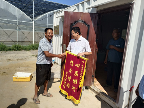8月19日上午,家住灌云縣圖河鎮(zhèn)官場村的特困農(nóng)戶林樹其,來到由蘇墾農(nóng)發(fā)云臺分公司實(shí)施興建的江蘇農(nóng)墾產(chǎn)業(yè)幫扶圖河豆丹養(yǎng)殖基地,向分公司總經(jīng)理宋光鋒獻(xiàn)上寫有“心系圖河 情牽特困”字樣的錦旗,表達(dá)他對基地今年以來無私傳授豆丹養(yǎng)殖技術(shù),幫扶他一年實(shí)現(xiàn)脫貧致富的感激之情。