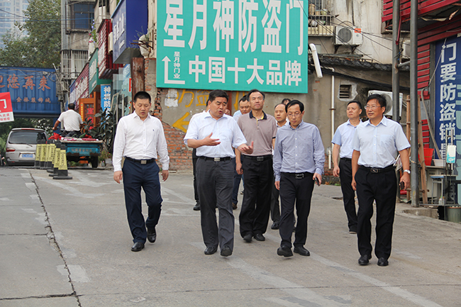 魏紅軍現(xiàn)場調(diào)研了金橋裝飾材料市場、金橋家裝廣場,實地察看了五金燈具廳、消防應(yīng)急控制站、倉庫區(qū)圍墻、綜合廳水泥瓦屋面等處,詳細了解目前經(jīng)營場所面臨的安全隱患問題和消防通道進出情況。