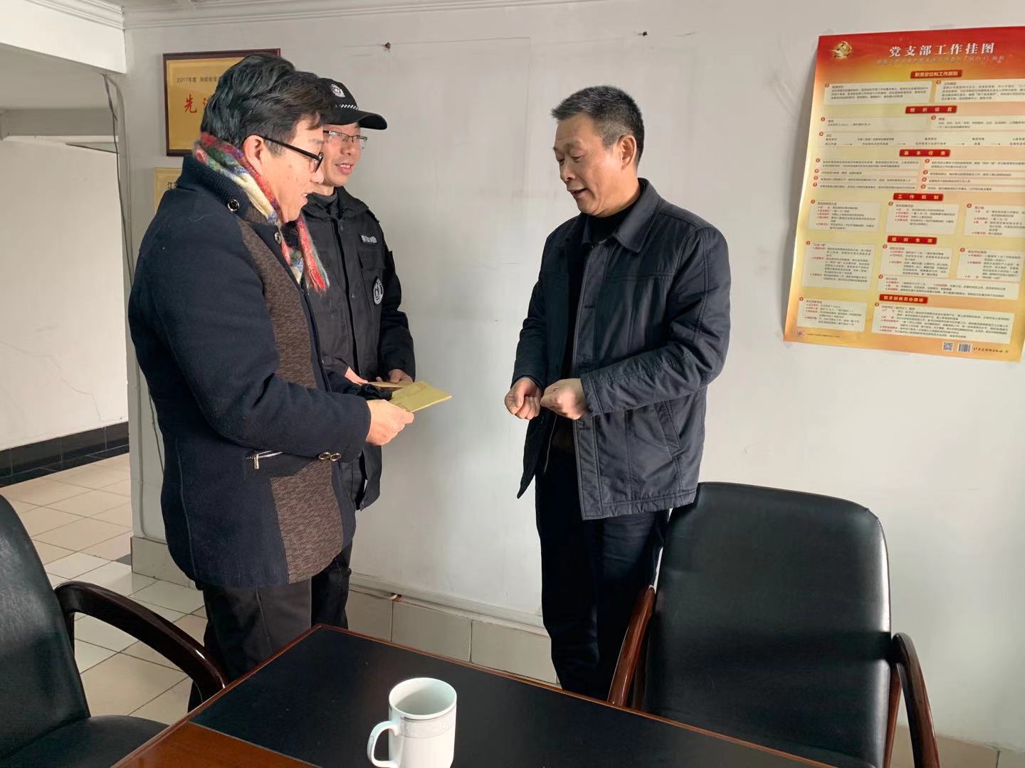肖建康現(xiàn)從事保安工作,老家在蘇北農村,父母常年生病臥床,其本人2019年也因病住院治療,女兒還在上大學,生活比較困難。趙永康現(xiàn)從事車管工作,在南京無房,借住其哥哥家,因離異獨自帶孩子生活,目前女兒還在讀大學,家庭經濟困難。姚準明親切地詢問他們各自家庭情況,鼓勵他們要堅定信心、振作精神,保重好身體,早日擺脫困境,要相信在組織的關心和幫助下,日子會越來越好的。