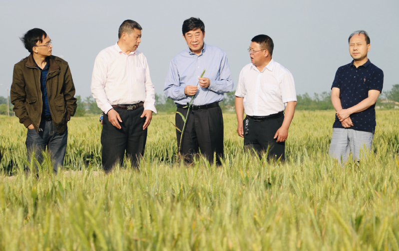 胡總一行先后來到小麥(超)高產(chǎn)田間、大華自主小麥(鎮(zhèn)麥-168)品種地頭、機(jī)插-微噴灌育秧場(chǎng)頭、正在擺盤的秧池田邊,并察看沿河綠地建設(shè)項(xiàng)目等現(xiàn)場(chǎng),細(xì)致了解情況,并在擺盤場(chǎng)頭與正在勞作的農(nóng)業(yè)一線員工熱情交流。