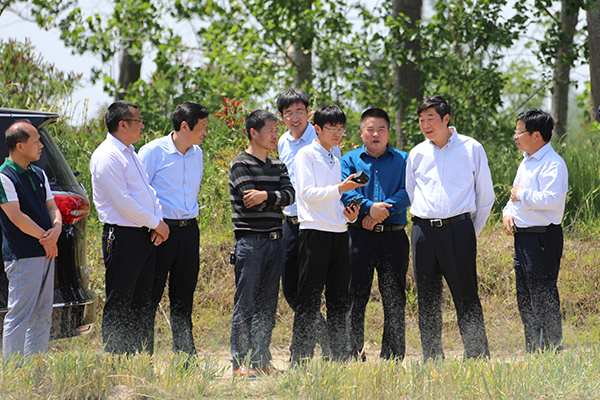 胡兆輝首先來到臨海林苗一體化項(xiàng)目區(qū)5009公路“鶴鄉(xiāng)綠徑”及蘇墾米業(yè)臨海米廠擬建倉儲項(xiàng)目區(qū)調(diào)研,肯定了臨海林業(yè)的發(fā)展。他在二生產(chǎn)區(qū)踏田察看了稻麥超高產(chǎn)栽培及配套技術(shù)千畝示范片的麥子長勢、長相,了解臨海麥田管理及三夏工作的開展情況;在三生產(chǎn)區(qū),對蘇墾農(nóng)發(fā)智慧農(nóng)業(yè)園項(xiàng)目區(qū)及配套設(shè)施建設(shè)和綠化規(guī)劃情況作了詳細(xì)了解。在四生產(chǎn)區(qū),胡兆輝步入正在收割的麥田,仔細(xì)察看麥田機(jī)械收割情況,又來到微噴灌育秧的秧畦邊細(xì)心察看、了解水稻育秧及無人機(jī)飛防情況。他勉勵現(xiàn)場工作的年輕農(nóng)技人員,希望他們努力在干事創(chuàng)業(yè)中成長。
