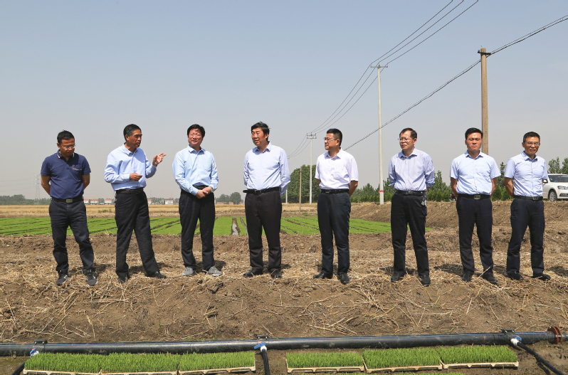6月的崗埠,金燦燦的小麥遍布田野,到處是一派豐收景象。胡兆輝一行先后實(shí)地查看了倉儲(chǔ)中心、污水管網(wǎng)項(xiàng)目、富民科技園等現(xiàn)場及在田秧苗、小麥的長勢情況,邊看邊聽取相關(guān)情況的匯報(bào),每到一處都向奮戰(zhàn)在生產(chǎn)一線的干部職工致以親切的問候。