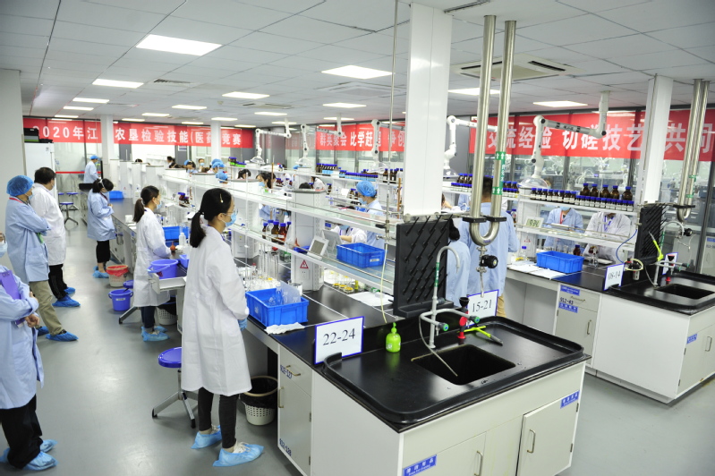 檢驗技能(醫(yī)藥)競賽包含理論考試和操作技能兩個項目。理論考試占總分值30%,操作技能占總分值70%。為確保競賽公平公正,本次競賽專門邀請連云港市藥品檢測所25名檢驗專家擔(dān)任評委。
