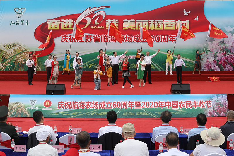 慶祝大會圓滿結(jié)束后,參加活動的領(lǐng)導(dǎo)、來賓與職工群眾一同觀看了場慶文藝演出。職工表演的鼓樂《歡慶》、舞蹈《幸福中國一起走》《我們都是追夢人》、古箏演奏《南泥灣》《在希望的田野上》、縣淮劇團(tuán)的淮歌《愛不夠的地方是農(nóng)場》抒發(fā)了人們熱愛農(nóng)場、建設(shè)農(nóng)場的豪壯志情。鎮(zhèn)江知青的情景劇《臨海大地在呼喚》、鳳陽花鼓《春風(fēng)吹綠花鼓鄉(xiāng)》、無錫知青的詩朗誦《臨海農(nóng)場,我的第二故鄉(xiāng)》,讓人們仿佛回到了崢嶸歲月,重溫60年艱辛光榮的奮斗史。情景朗誦《禮贊六十年》、歌伴舞《走向新輝煌》表達(dá)了臨海人的美好愿景,將文藝演出推向了高潮。