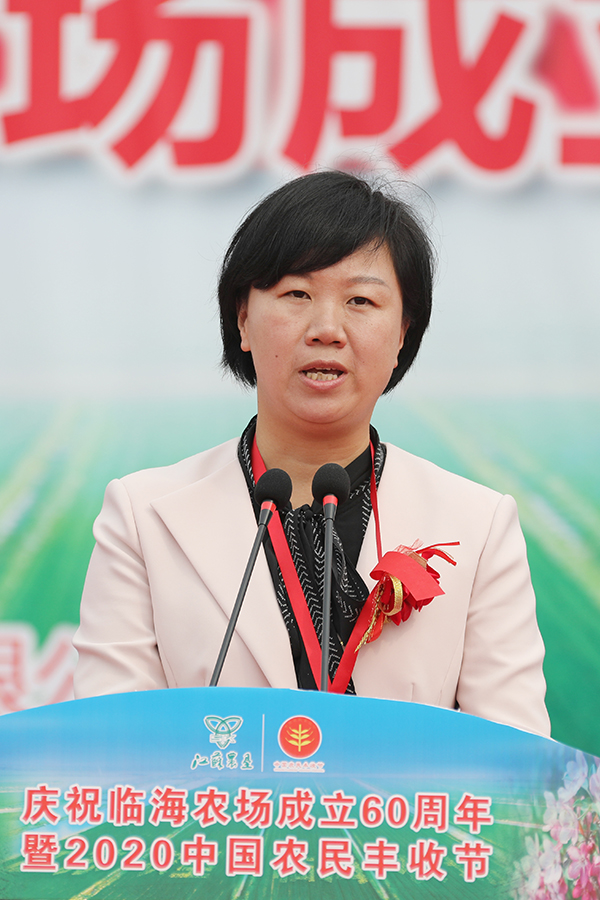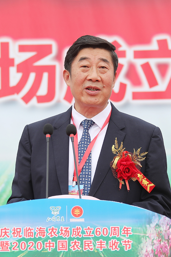 江蘇省農(nóng)墾集團(tuán)公司黨委副書記、總經(jīng)理胡兆輝代表江蘇省農(nóng)墾集團(tuán)公司黨委向臨海農(nóng)場公司建場60周年表示熱烈祝賀。他簡述了近年來江蘇農(nóng)墾的發(fā)展理念和取得全國農(nóng)墾利潤總額第一名的佳績,高度贊揚了臨海農(nóng)場公司建場六十周年來各項事業(yè)的發(fā)展成就。胡兆輝指出,江蘇農(nóng)墾將以“三個一”體系建設(shè)為抓手,在深化改革中不斷發(fā)展,努力打造中國現(xiàn)代農(nóng)業(yè)航母的“江蘇號”。他祝愿臨海明天更加燦爛輝煌,希望臨海人進(jìn)一步解放思想,弘揚農(nóng)墾精神、社會主義先進(jìn)文化,加強與地方合作,科學(xué)管理、創(chuàng)新發(fā)展、團(tuán)結(jié)拼搏,為建設(shè)“經(jīng)濟(jì)強、產(chǎn)業(yè)優(yōu)、職工富、生態(tài)美、農(nóng)場興”的新農(nóng)場不懈奮斗,為江蘇農(nóng)墾建設(shè)發(fā)展做出更大貢獻(xiàn)!