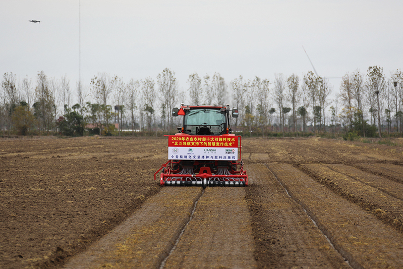 11月5日,農(nóng)業(yè)農(nóng)村部2020年十大引領性農(nóng)業(yè)技術“北斗導航支持下的智慧麥作技術”小麥無人播種施肥技術現(xiàn)場觀摩會在臨海舉行,智慧麥作技術集成示范基地落戶蘇墾農(nóng)發(fā)智慧農(nóng)業(yè)科技園。