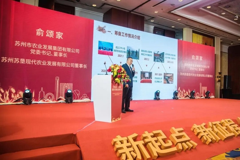 蘇州農(nóng)發(fā)集團(tuán)董事長、蘇州蘇墾董事長俞頌家作新公司籌建情況的匯報(bào),從公司籌備工作情況、公司概況和服務(wù)內(nèi)容、發(fā)展目標(biāo)和未來展望等方面詳細(xì)介紹了新公司的情況。