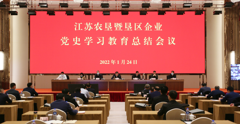 1月24日,江蘇農(nóng)墾暨墾區(qū)企業(yè)黨史學(xué)習(xí)教育總結(jié)會(huì)議在寧召開(kāi)。會(huì)議深入學(xué)習(xí)貫徹習(xí)近平總書(shū)記重要論述重要指示和中央、全省、省國(guó)資委暨省屬企業(yè)黨史學(xué)習(xí)教育總結(jié)會(huì)議精神,全面總結(jié)墾區(qū)黨史學(xué)習(xí)教育取得的成效經(jīng)驗(yàn),對(duì)鞏固拓展黨史學(xué)習(xí)教育成果進(jìn)行部署安排。集團(tuán)公司黨委書(shū)記、董事長(zhǎng)魏紅軍出席會(huì)議并講話(huà),他強(qiáng)調(diào),要堅(jiān)決貫徹落實(shí)習(xí)近平總書(shū)記關(guān)于黨史學(xué)習(xí)教育的重要指示和中央、省委決策部署,深入學(xué)習(xí)貫徹黨的十九屆六中全會(huì)、省第十四次黨代會(huì)精神,不斷鞏固拓展黨史學(xué)習(xí)教育成果,奮力譜寫(xiě)“強(qiáng)富美高”新江蘇現(xiàn)代化建設(shè)的農(nóng)墾篇章,以?shī)^進(jìn)新征程、建功新時(shí)代的優(yōu)異成績(jī)迎接黨的二十大勝利召開(kāi)。集團(tuán)公司黨委副書(shū)記、總經(jīng)理胡兆輝主持會(huì)議,黨委副書(shū)記姚準(zhǔn)明傳達(dá)中央、全省、省國(guó)資委暨省屬企業(yè)黨史學(xué)習(xí)教育總結(jié)會(huì)議精神,黨委委員、副總經(jīng)理姜建友,黨委委員、總會(huì)計(jì)師劉克英,黨委委員、紀(jì)委書(shū)記李旭東,黨委委員、副總經(jīng)理王立新出席會(huì)議。
